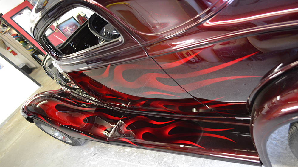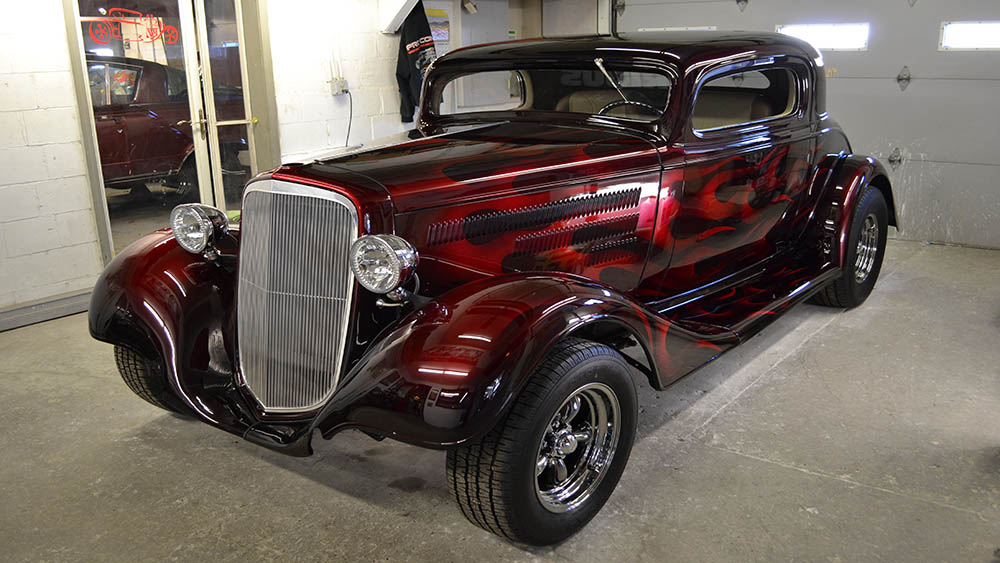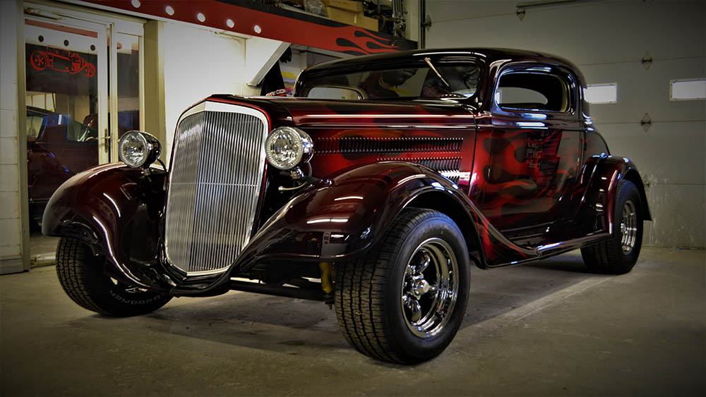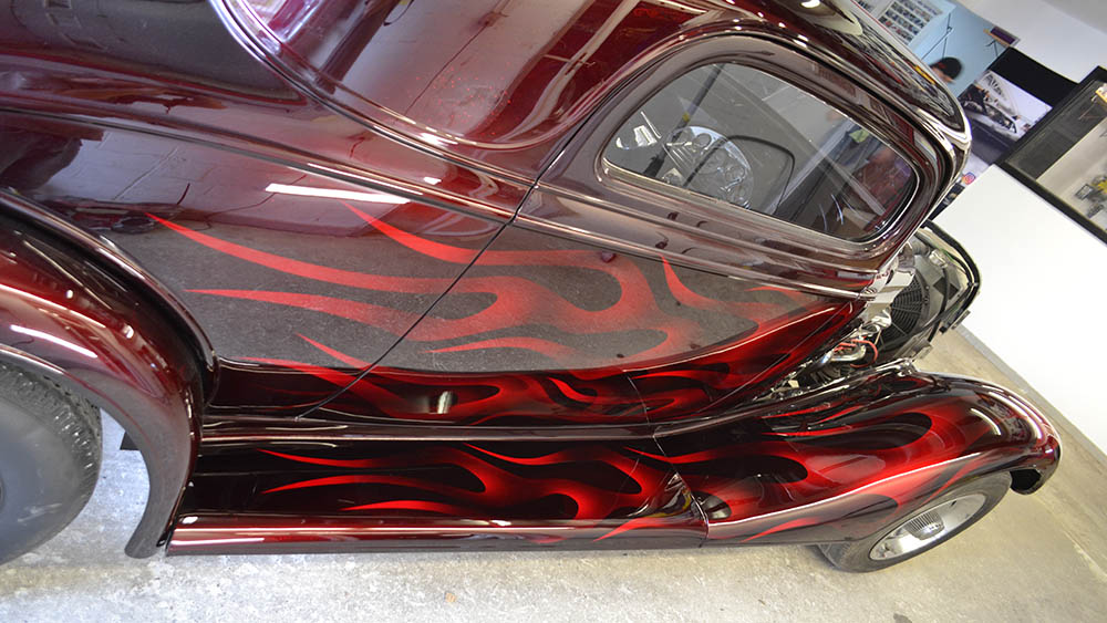There are ghost flames and then there are Bruce Harvey ghost flames. The body lines of a 1934 Chevy Coupe are perfect for the layered and flickering flames that flow from front to back on this classic beauty.