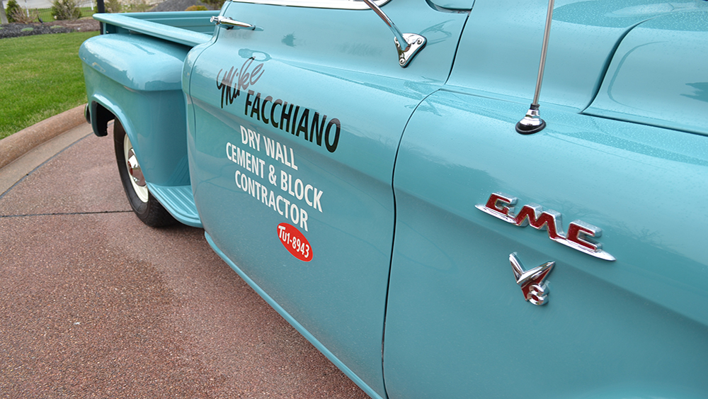 This is one of our most heart-warming jobs. In the mid-50’s — early 60’s, the customer’s dad had a 1955 GMC truck he used for work with his company’s name on the doors. While visiting relatives in Italy, someone happened to have a picture of his dad standing next to his truck, so, of course, they let him keep the picture. He knew what he had to do next — find a 1955 GMC Truck and replicate the original look. We were honored to make his dream a reality. We used the period-correct color inside and out and stenciled the company name on the doors. You can imagine the emotional exchange when the son presented his dad with the truck he had as a young man. It was wonderful.