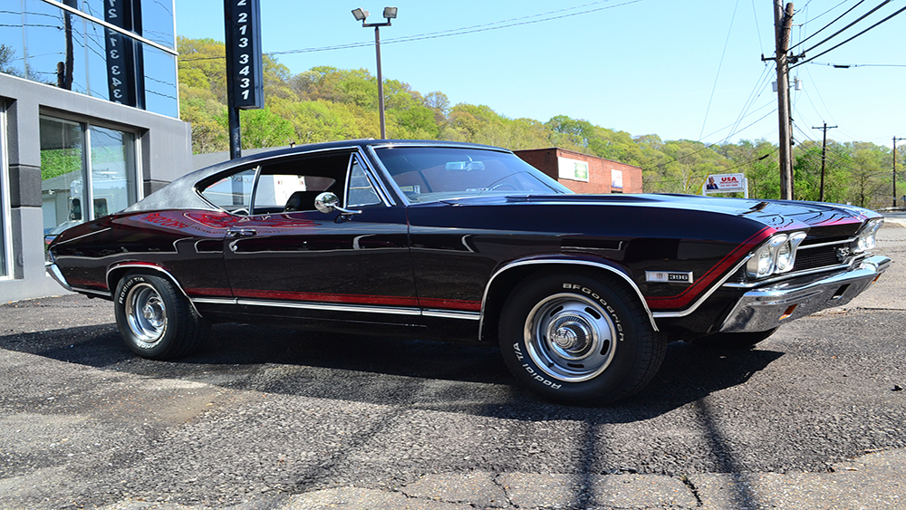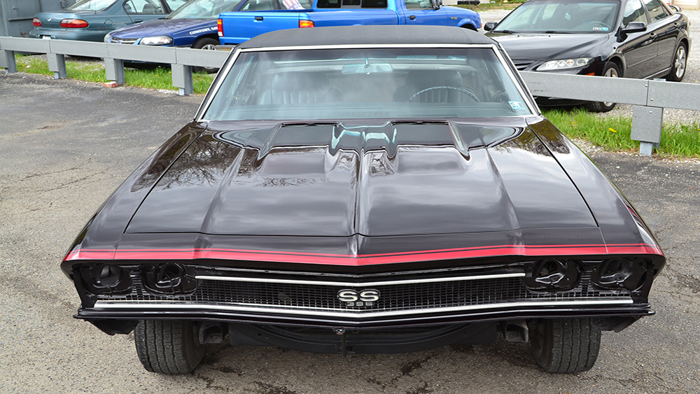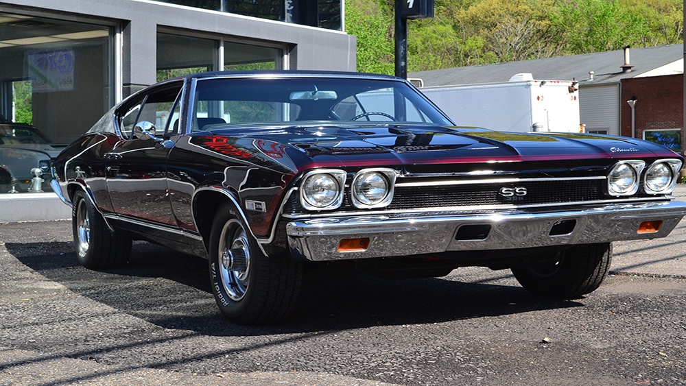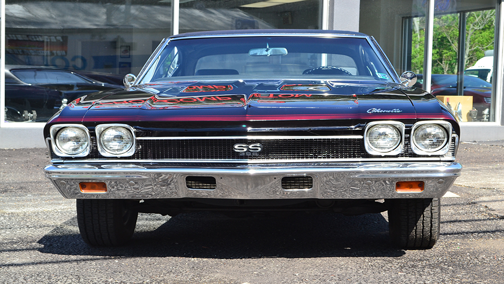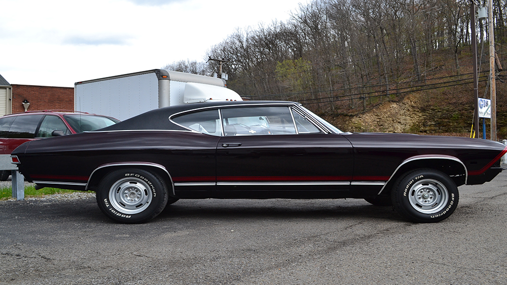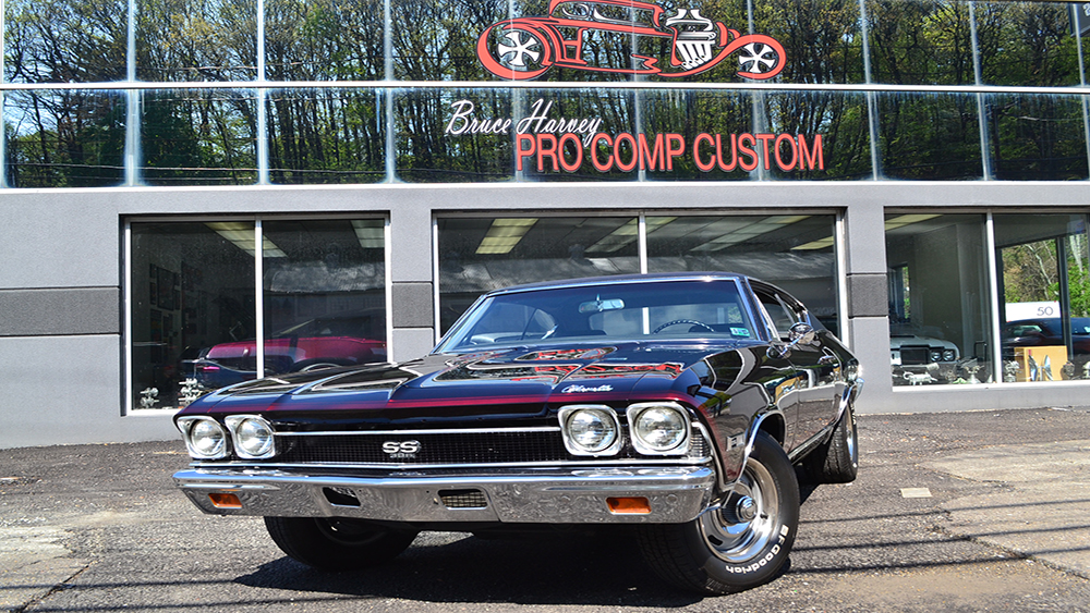 The owner of this car was torn on the color – until he saw the 442 we painted and he knew black brandywine was the way to go. Bruce added a pure brandywine stripe to enhance the body color.