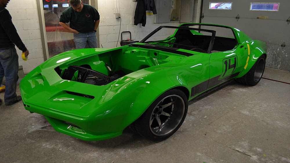 What is not to love about this SEMA car? This customer is very hands-on when building his cars, so we were honored to be selected to do the paint on this sexy ’68 Corvette named the “Green Mamba”. The customer spent hours working with West Penn Laco to create this one-off custom blended color. He selected BASF R-M Diamont paint for the ultimate finish.