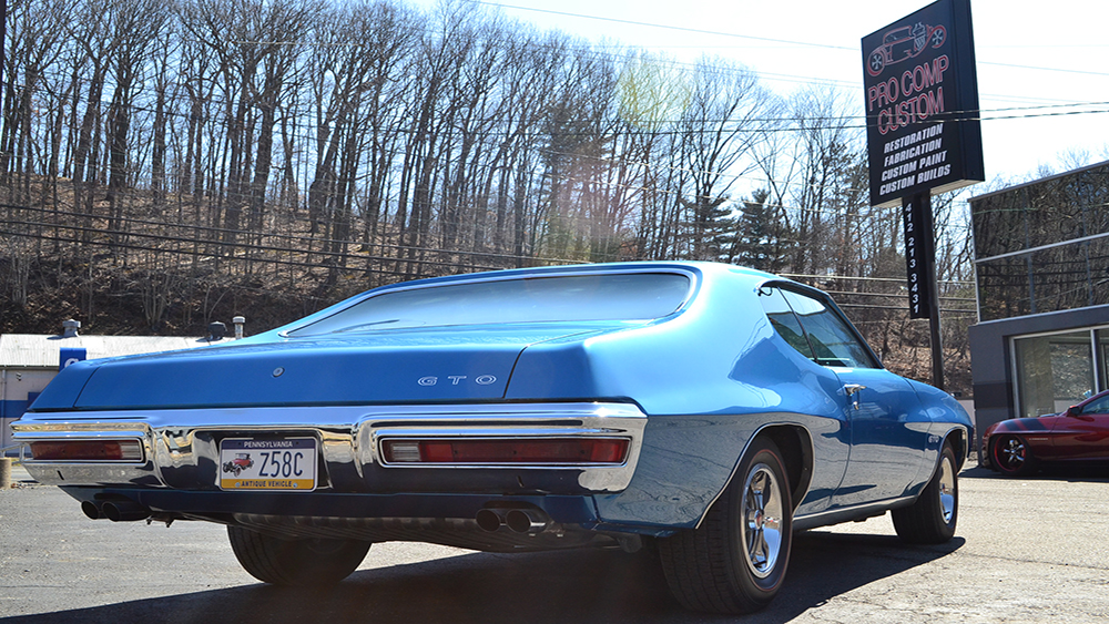 It is fun to tinker with an older car, but not everyone feels the same about doing bodywork and paint. The GTO’s owner is very hands-on and has his baby spinning like a top. For the final touch — a beautiful paint job — he asked us to do our magic. In person the color is absolutely stunning. The color is Lucerne Blue and the depth of shades within the paint is incredible.
